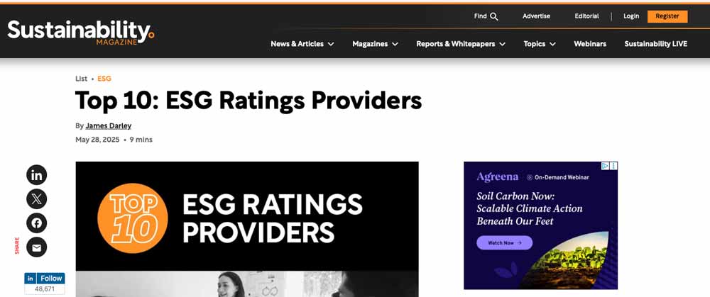 In this week’s Top 10, Sustainability Magazine spotlights some of the best and most influential ESG ratings providers and delve into what makes them so effective.